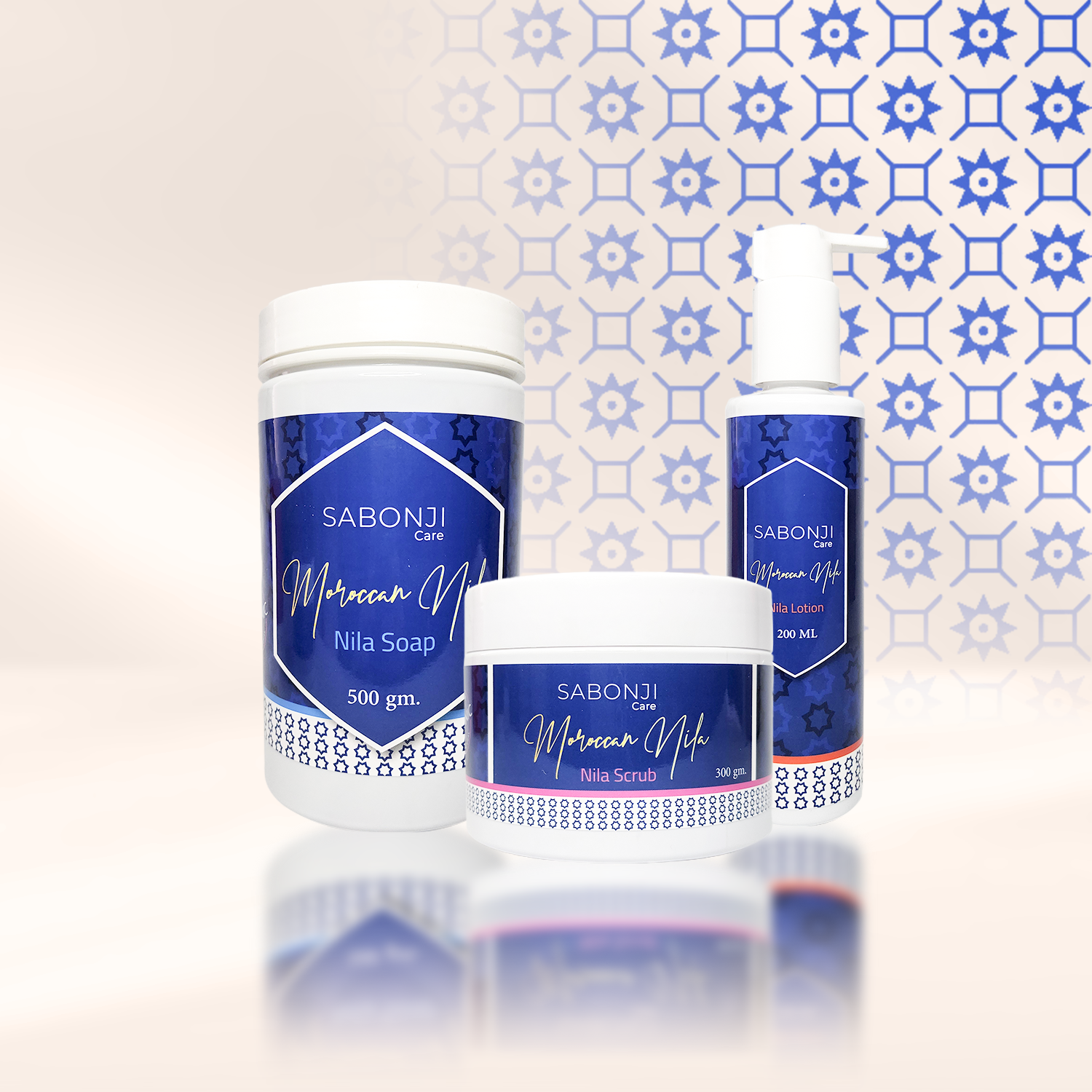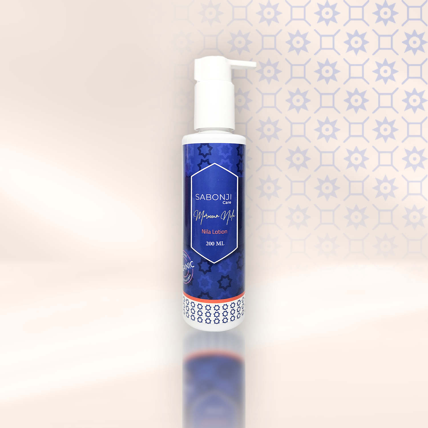 لوشن النيلة المغربية: خلاصة النيلة، زبدة الشيا العضوية، فيتامين B5، خلاصة البابونج.