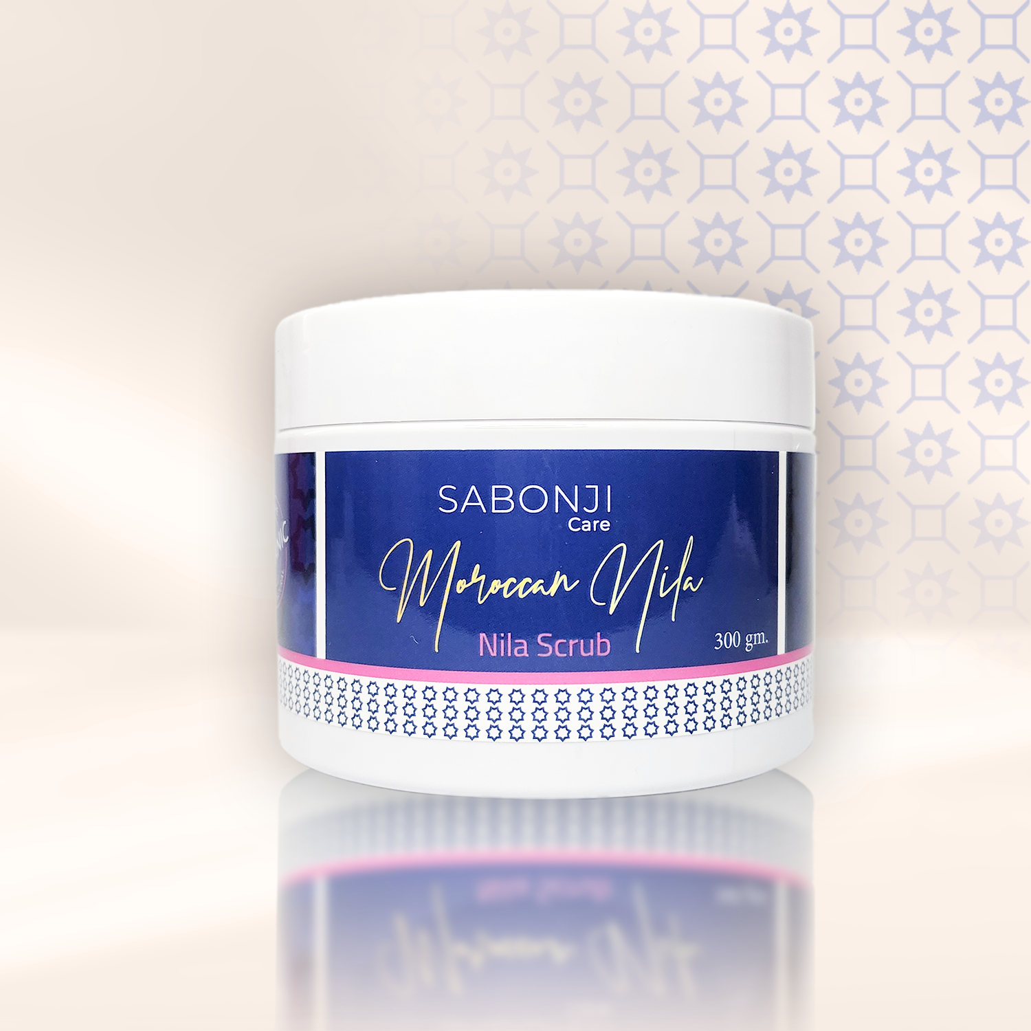 مقشر النيلة المغربية: بلورات السكر الناعمة، مسحوق النيلة، زيت اللوز الحلو، خلاصة اللافندر.