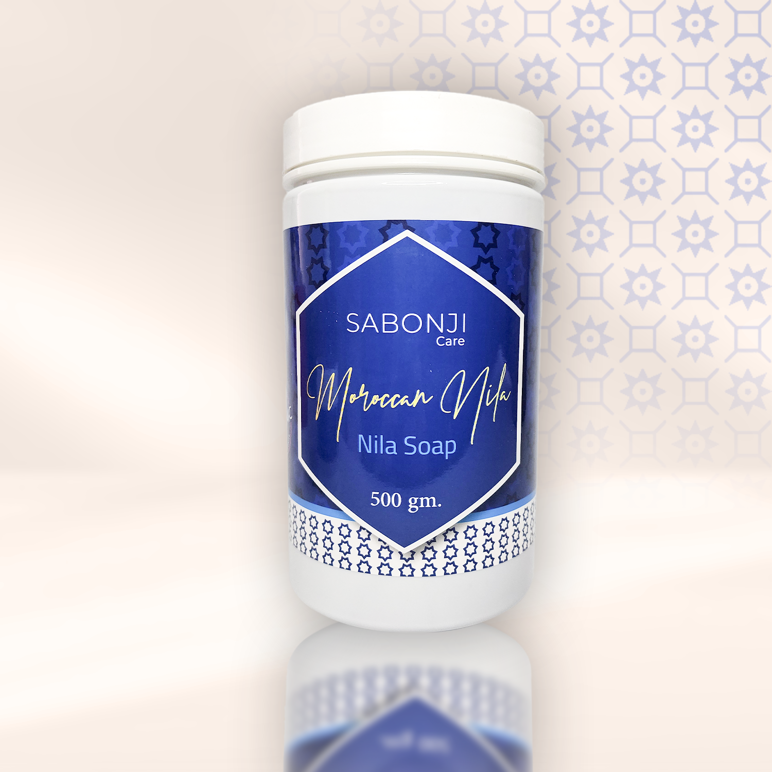 صابونية النيلة المغربية: مسحوق النيلة المغربية الأصلي، زيت الأرغان المغربي، زيت الزيتون البكر، فيتامين E